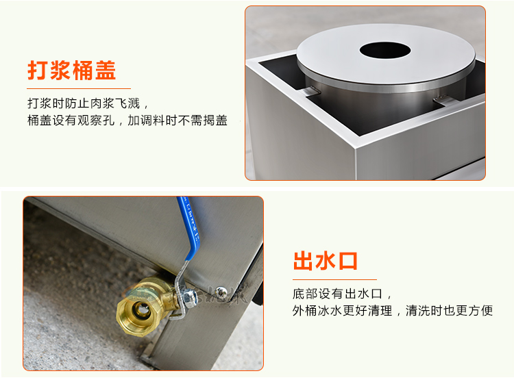 多功能肉丸打漿機擁有高速旋轉,達到快速碎食效果,讓打漿更細膩,讓您告別傳統手工剁肉攪肉打漿,將食材放入打漿機器入料口,食材由上至下翻轉打碎,讓肉餡不松散,細膩有勁道,此款38制冷高速肉丸打漿機,開機2-3分鐘即可完成打肉、配料、攪拌成漿。針對魚肉、豬肉、牛肉、等肉類纖維組織、改善了肉質脂肪纖維,生產出來的丸子外表光滑細嫩、低脂、口感爽脆,彈性好,韌性好,是潮州魚、肉丸的打漿設備