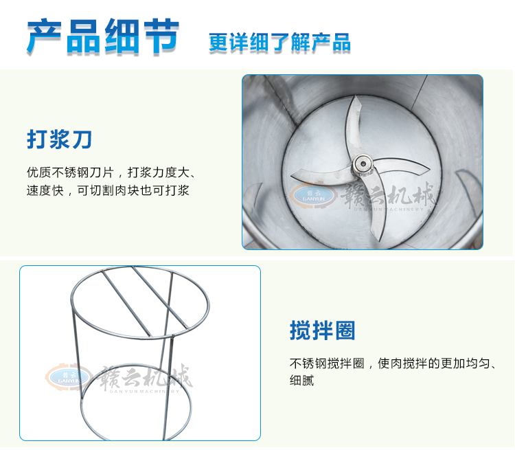 贛云牌28型全封閉高速肉丸打漿機對電動機密封包裝,更好的保護電機,外筒出水口底部設計,排水更干凈,整體不銹鋼材質,更符合食品衛生加工需求,打漿刀角度大,翻轉效果好,打漿更均勻,綜合對比得出,這款28型全封閉高速肉丸打漿機是小作坊肉丸加工優選打漿設備,打漿速度快,效果好,出漿細膩度好,做出的丸子彈性強!