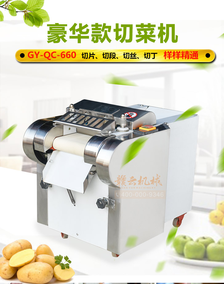 贛云牌多功能切菜機是根據多種樣機在實地使用中存在不足之處,反復改進設計制造,采用不銹鋼和全滾動軸承結構,具有外形美觀,成熟可靠,使用維修方便等特點。適用直蔬菜脫水、速凍、保鮮、腌漬等食品行業各類蔬菜。刀片距離可調節在0.1cm-2cm之間即切片、丁、絲厚薄在0.1cm-2cm。